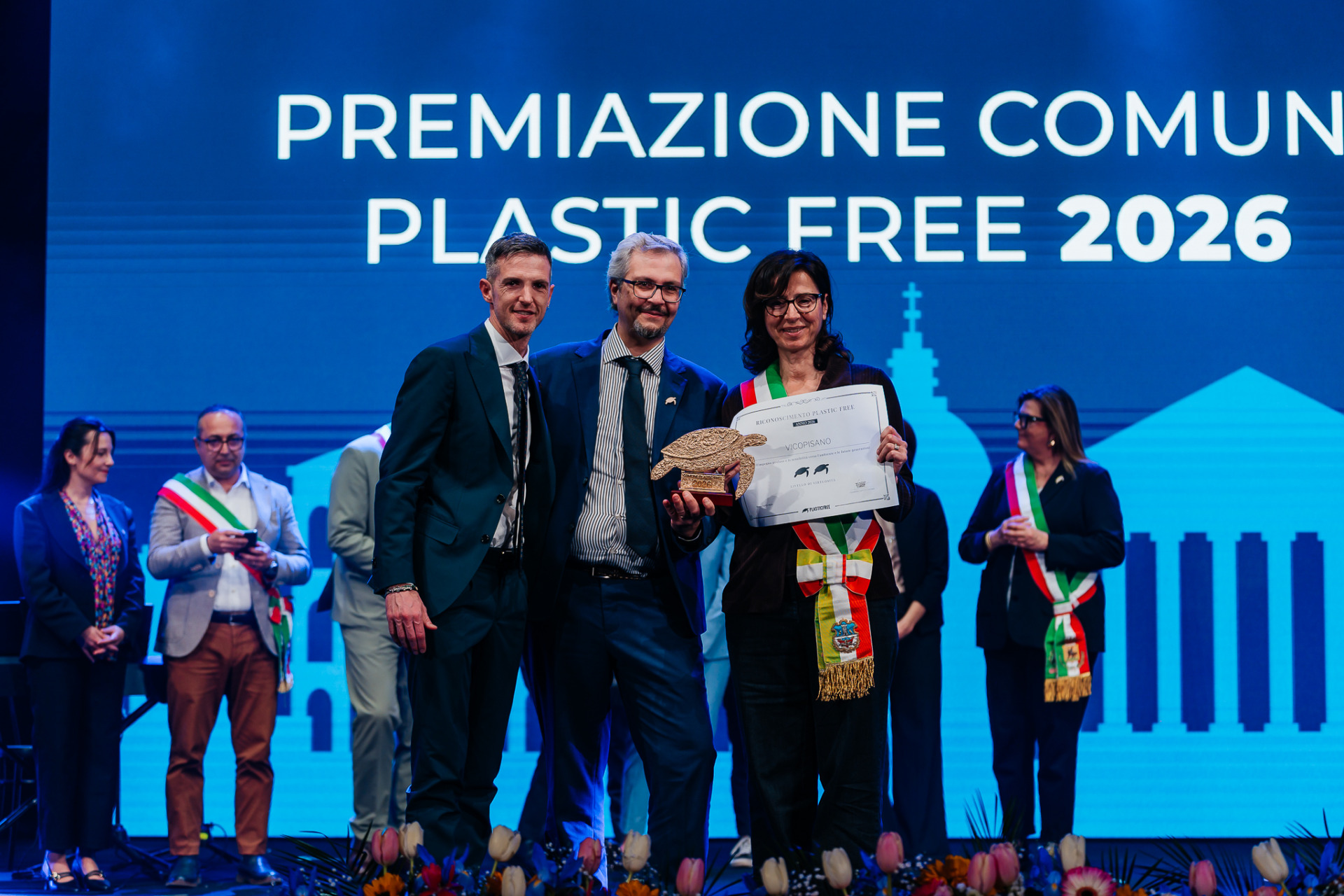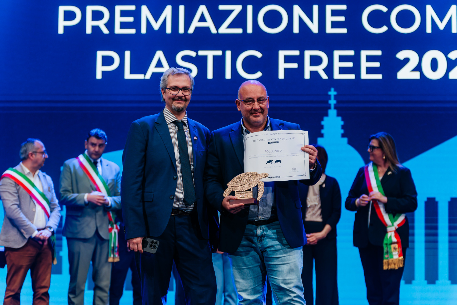 Sono cinque i Comuni toscani premiati a Roma con il riconoscimentoComune Plastic Free”, il premio promosso da Plastic Free Onlus, l’organizzazione di volontariato impegnata dal 2019 nel contrasto all’inquinamento da plastica. Ad essere premiati sono stati i Comuni di Barberino Tavarnelle, Follonica (2 tartarughe), Massa Marittima, Pisa e Vicopisano (2), distintisi per l’impegno nella gestione virtuosa dei rifiuti e nella promozione di politiche attive a tutela dell’ambiente in collaborazione con il referente regionale dell’associazione, Mario De Longis.