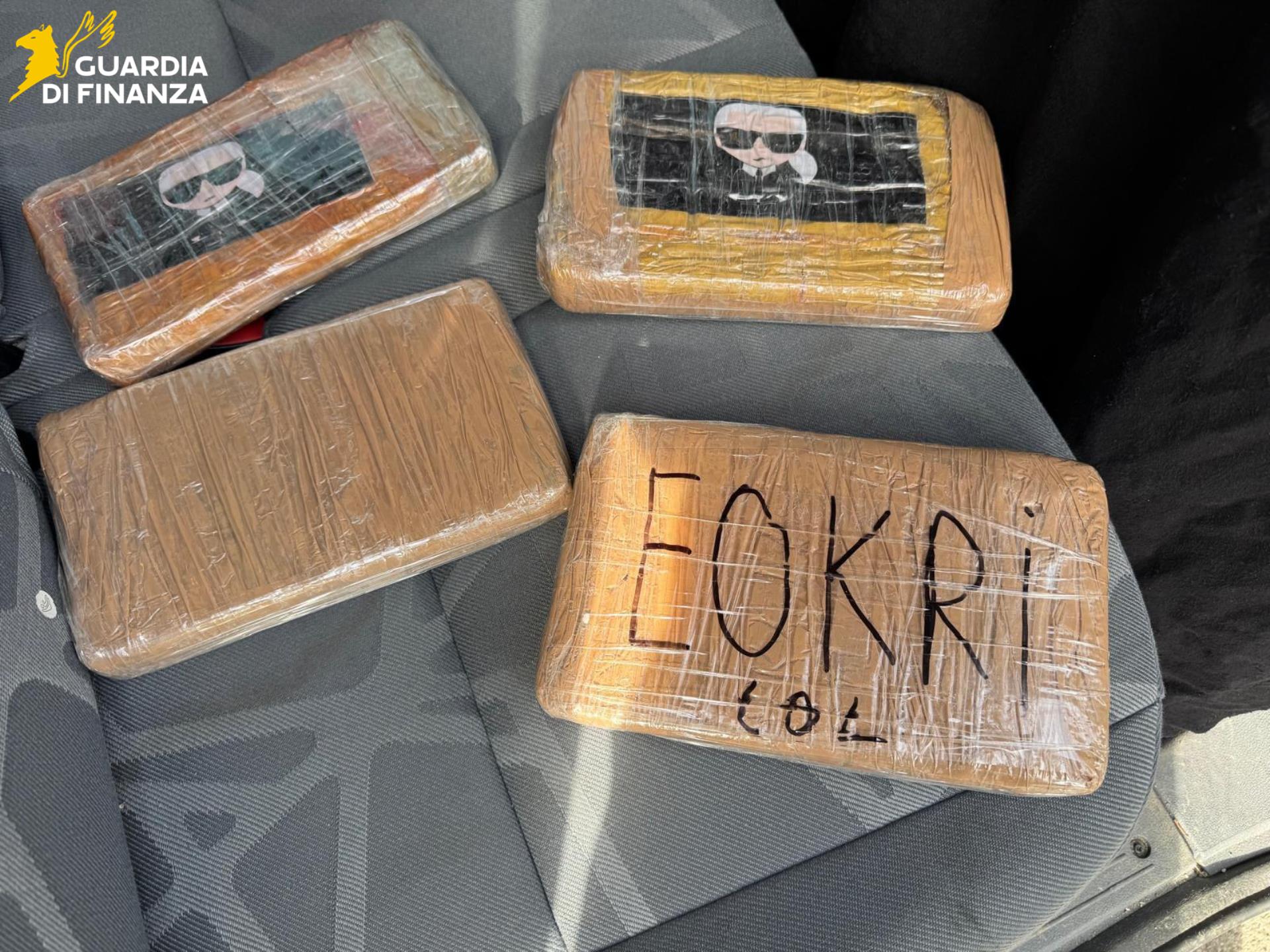 La perquisizione del veicolo ha svelato un carico ingente: 4,3 chilogrammi di cocaina suddivisi in quattro panetti termosaldati. Nascosti sotto il paraurti posteriore e fissati con nastro telato, i militari hanno rinvenuto altri 5 panetti, per un peso lordo di 5,8 chilogrammi, contenenti una sostanza granulosa al momento non identificata e inviata in laboratorio per le analisi.