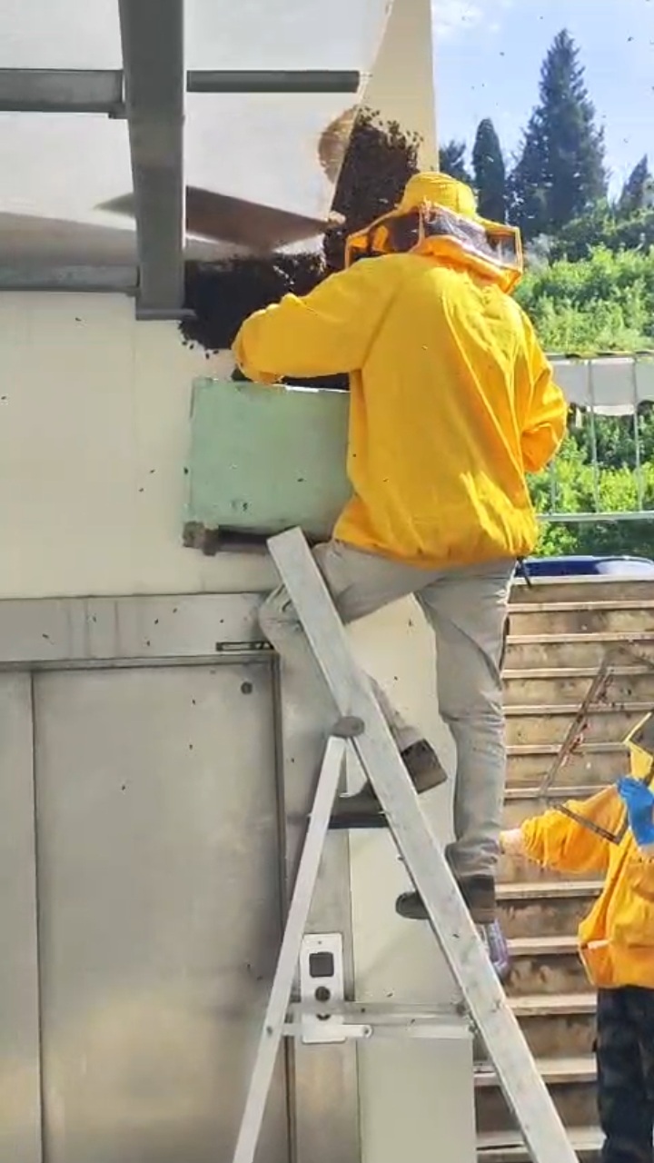 È successo all’ospedale Santa Maria Annunziata dove questo bel gruppo di insetti impollinatori, suddividendosi dall’alveare originario in più parti in cerca di una nuova casa, aveva scelto il nuovo nido naturale all’ingresso della radioterapia, rendendolo casualmente anche simile a un cuore.