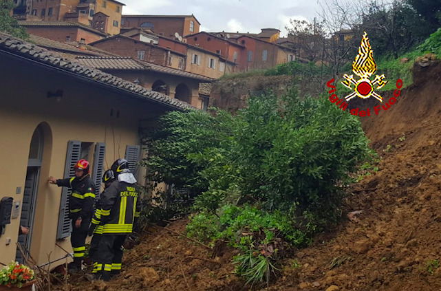Sempre a Siena in Via del Costone una struttura ricettiva è stata evacuata (con ben 13 persone all’interno), per lo smottamento del terreno a monte del fabbricato.