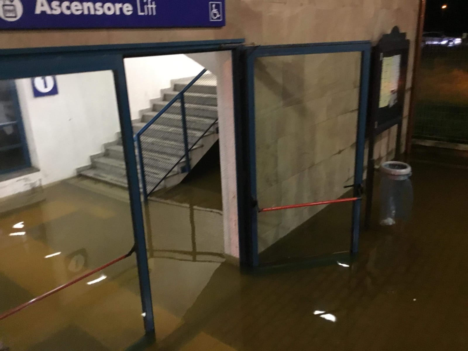 Grave situazione di difficoltà alla stazione di Lastra nel tardo pomeriggio: l’ingresso, come si vede dalle foto è completamente allagato