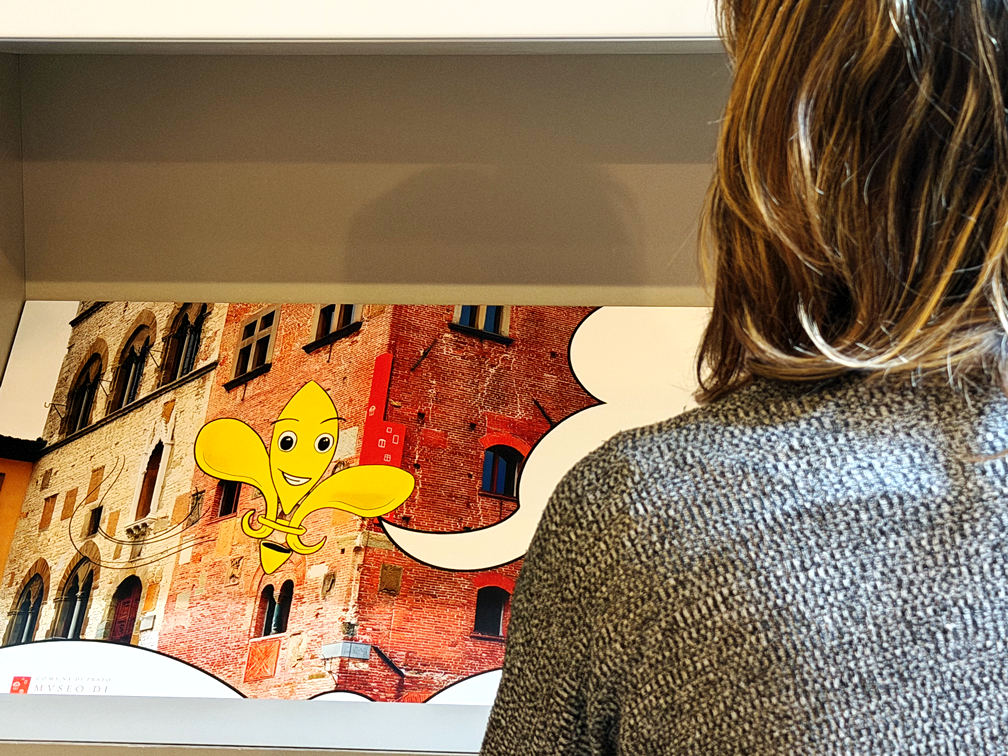 Il percorso con le grafiche di Dorando è composto da pannelli didattici, collocati nelle sale del museo, che raccontano e spiegano la storia e il valore del museo e della sua collezione, anche in lingua inglese, con un linguaggio semplice e graficamente comunicativo.