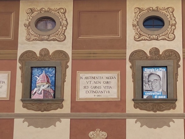 Ci sono anche dei contemporanei che sono stati testimoni di pace, anch’essi rappresentati sulle finestre del seminario, come Giorgio La Pira, Giovanni XXIII (autore dell’enciclica Pacem in Terris), il larigiano fra’ Bellarmino Bagatti, il più noto archeologo di Terra Santa e per guardare all’oggi, padre Pierbattista Pizzaballa. Questo per dire che la pace si costruisce ogni giorno, anche a nei nostri territori e si può fare anche oggi.