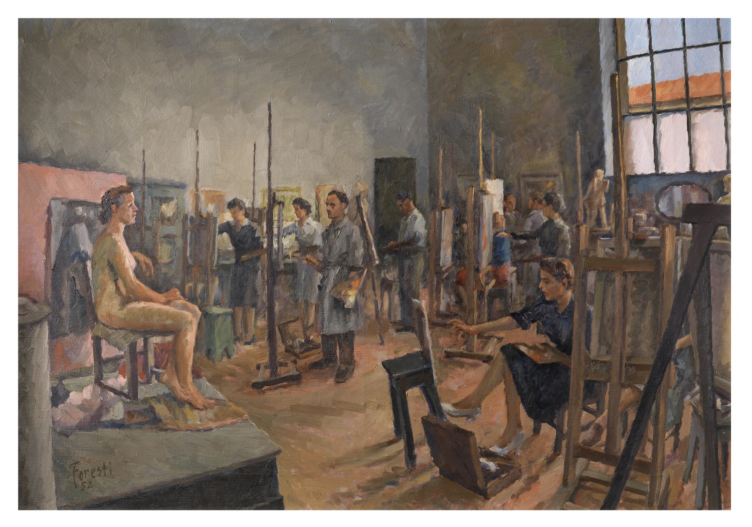 Ora, dopo sessant’anni, si aggiungono nella stessa raccolta anche l’Autoritratto ’62 (1962, olio su tela cm. 33×48) e Scuola di pittura (1952, olio su tela cm. 140×104).
