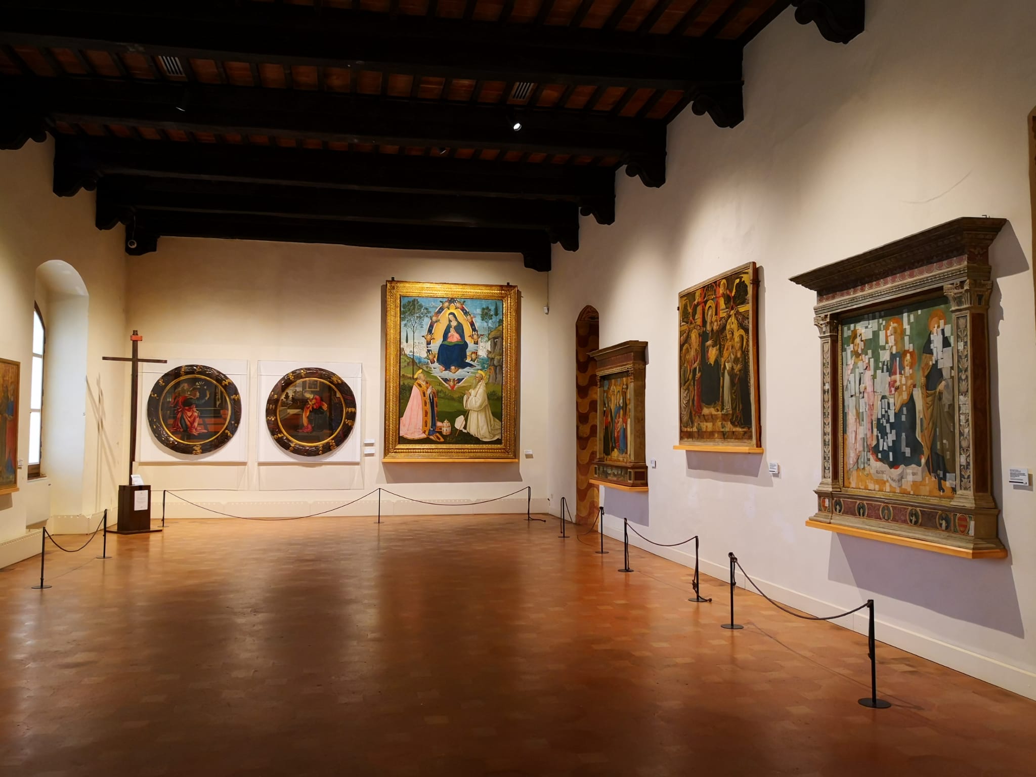 L’esposizione ha permesso ai due dipinti in arrivo da San Gimignano di affiancare un altro imponente tondo dell’artista, conservato nello stesso museo americano e raffigurante La Sacra Famiglia con San Giovanni Battista e Santa Margherita.