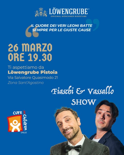 L’iniziativa nasce sull’onda del grande successo dello scorso maggio a Löwengrube Limite sull’Arno, dove, in occasione dell’evento per i 20 anni di Löwengrube, alla presenza di Giorgio Panariello, tesomonial di Cure2Children, sono stati raccolti oltre 25.000 euro a sostegno della Fondazione. Il 26 marzo a Pistoia sarà un nuovo, importante momento di condivisione e responsabilità sociale. Ospiti d’eccezione della serata saranno Leonardo Fiaschi, cabarettista e imitatore tra i più apprezzati del panorama nazionale, e Gianmaria Vassallo, che contribuiranno a rendere la serata un mix di spettacolo e impegno sociale, senza mai perdere di vista il valore della causa. Personaggi di grande calibro come Leonardo Pieraccioni, Giorgio Panariello e altri artisti toscani hanno da sempre scelto di affiancare Cure2Children, mettendo la loro notorietà al servizio della Fondazione per sensibilizzare il pubblico e raccogliere fondi a favore dei bambini malati di cancro. Il loro coinvolgimento testimonia l’importanza e la serietà della missione, rafforzando il legame tra territorio, cultura e solidarietà. La serata vedrà la partecipazione di autorità locali, giornalissti, enti pubblici e privati, uniti dall’obiettivo comune di sostenere e promuovere la missione di Cure2Children.