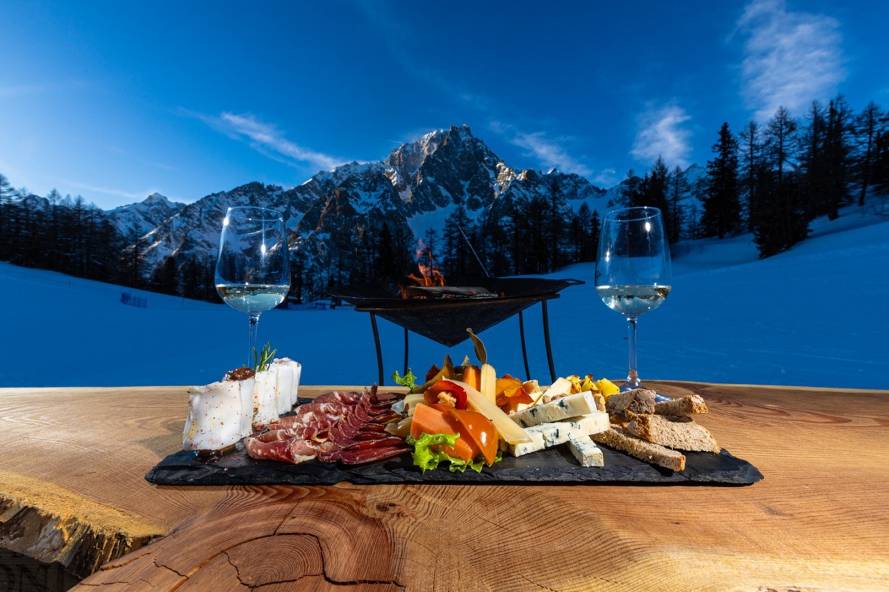 Grazie alla funivia Courmayeur aperta fino a mezzanotte, le serate si accendono con cene in quota quota e momenti di convivialità unici, tra luci soffuse e panorami che tolgono il fiato.